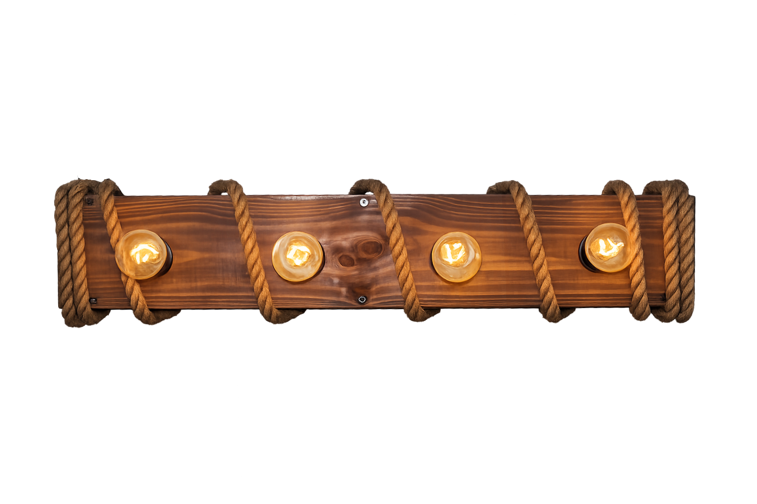 4 Focos | 80 cm | Madera Chilena y Cuerda de Yute Natural
