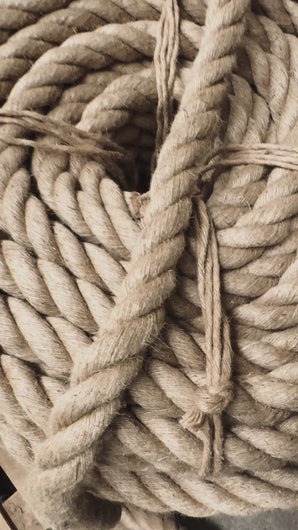 Cuerda elaborada con fibra natural de yute, de gran diámetro y presencia visual, ideal para proyectos decorativos de gran formato y aplicaciones funcionales donde se requiere estética rústica natural. Su textura permite manipulación relativamente cómoda y nudos firmes sin dañar superficies, siendo muy utilizada en ambientaciones, escenografía, arquitectura interior y rascadores para mascotas.
